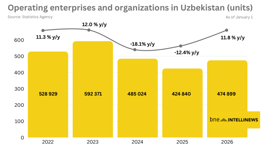 По данным Национального статистического комитета, по состоянию на 1 января в Узбекистане насчитывалось 474 899 действующих предприятий и организаций.