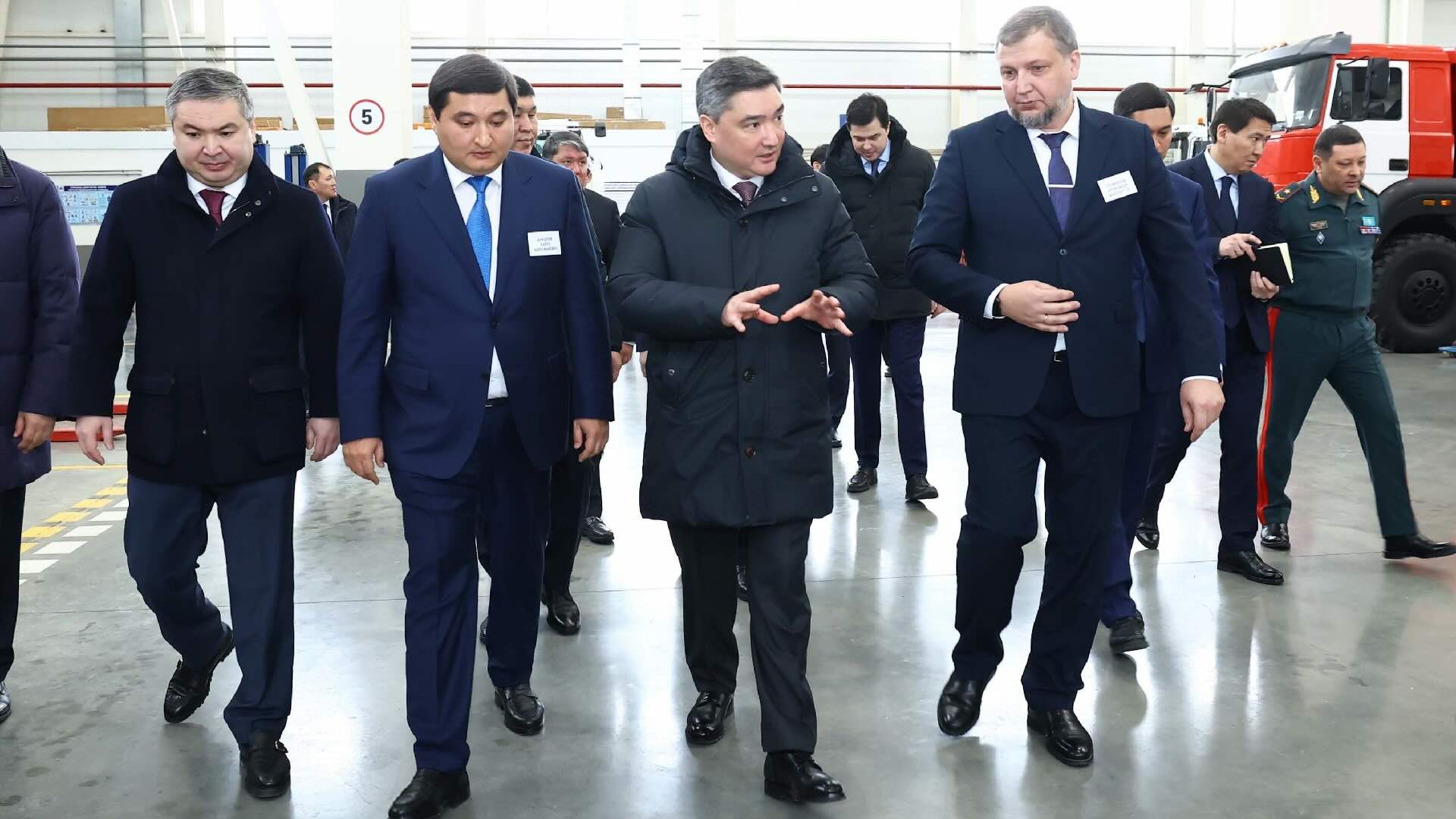В ходе поездки премьер-министр ознакомился с деятельностью завода по производству пожарной и специальной техники и навесного оборудования ТОО «Автокомпоненты KZ». Предприятие введено в эксплуатацию в январе 2025 года. На реализацию проекта направлено более 5,1 млрд тенге собственных средств. Предприятие получило поддержку Фонда развития предпринимательства.