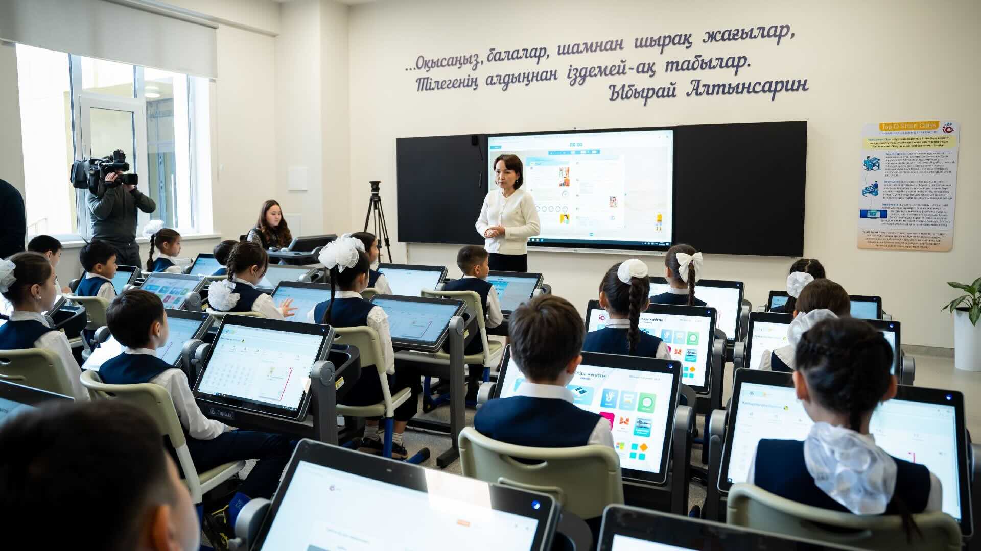 В средней школе №99 Астаны состоялось официальное открытие инновационного образовательного пространства, объединяющего современные технологии и выводящего учебный процесс на новый уровень. Пилотный проект TopIQ Smart Class внедрен акиматом Астаны, передает корреспондент Check-point.kz со ссылкой на пресс-службу правительства РК.