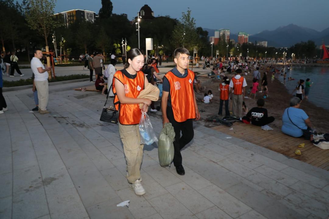 «Уважаемые жители Алматы и гости нашего города! Призываю всех содержать общественные места в чистоте и сохранять общественный порядок. В случае нарушений, подпадающих под статью 505 Административного кодекса, будет накладываться штраф в размере 5 МРП. Также предупреждаем, что после 22 часов вечера запрещено на пляже включать громко музыку и шуметь», — обратился к посетителям полицейский Сагитулла Сиясханов, представляющий УП Алматинского района.