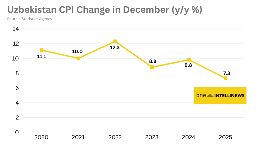 Источник: Uzbekistan's annual inflation eases to 7.3% in December